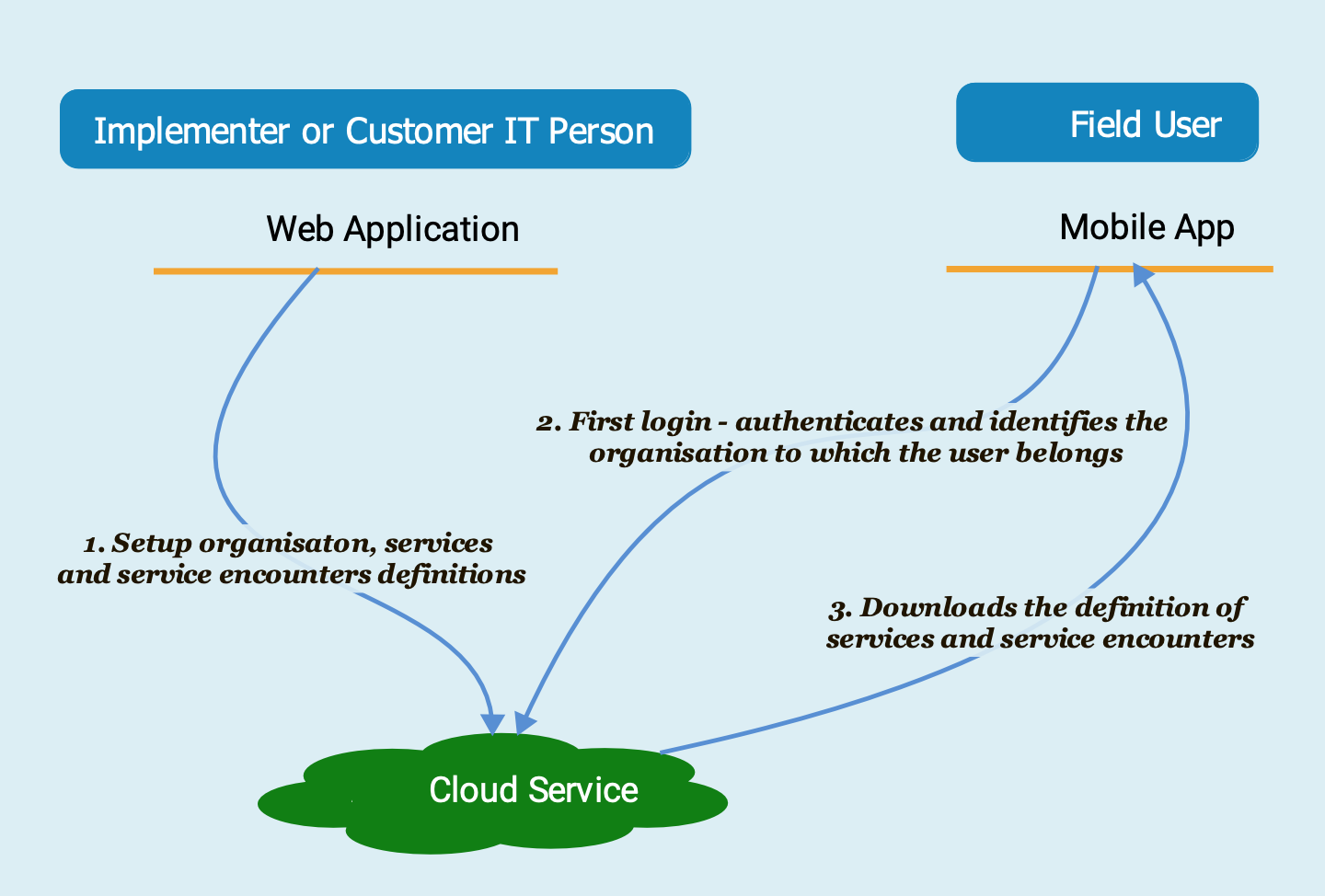 During organisation setup the implementer or customer IT person sets up catchments with locations and assigns them to the provider (field user)